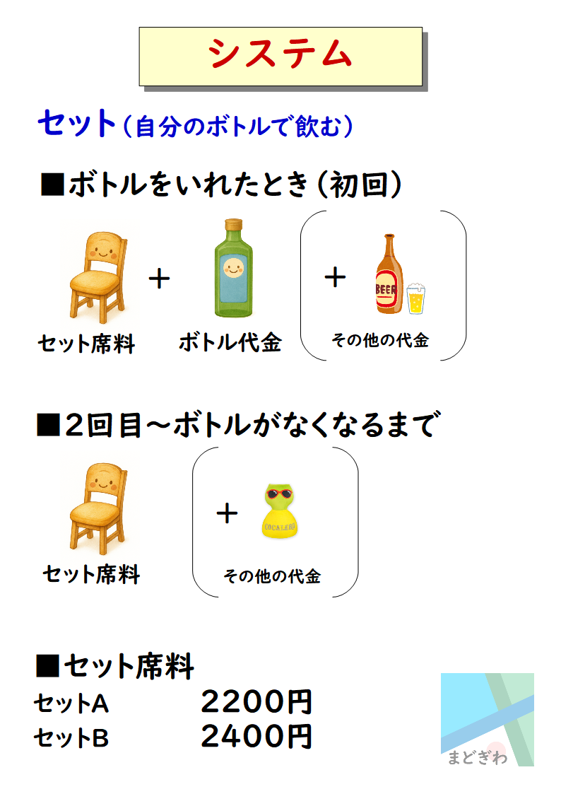 メニュー表です。価格はすべて税込み(内税)表記です。